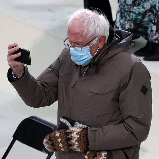 Stan culture is bad when applied to politicians, but Bernie Sanders' fashion choices for the inauguration? Iconic!!!