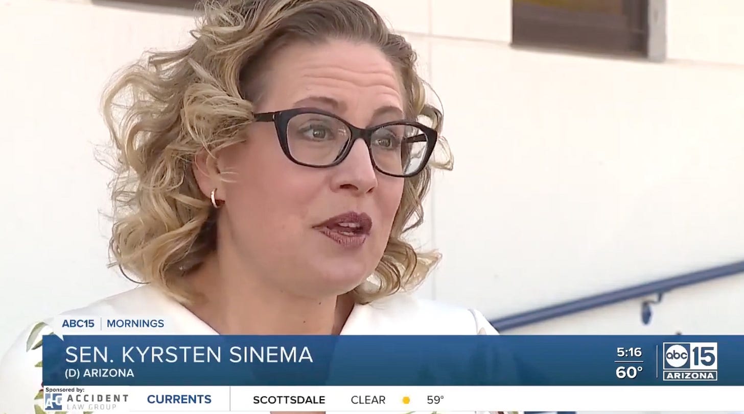 Ladies and gentlemen and everyone on every part of the gender spectrum, I give you Arizona Sen. Kyrsten Sinema's latest thoughts on how she doesn't want to eliminate the filibuster. From the Wall Street Journal (emphasis mine):