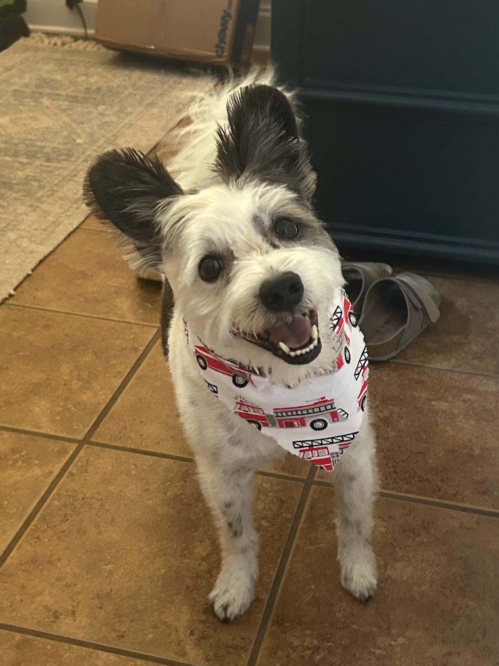 Elsie writes, “In terms of gayness, my mom just declared him LGBTQ+ a few years ago when she bought the rainbow collar. In my mind, he's somewhat of like an elderly gay gentleman, though. Like Ian McKellen adjacent. But his sexuality wasn’t discussed until my mom saw the collar.”
