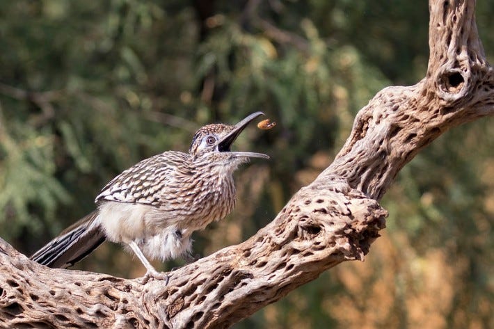 The greater roadrunner can run 15 miles per hour, hunts an enormous variety of creatures (including poisonous prey and rattlesnakes as if it's no big deal), and positively thrives in harsh desert climates that would level most of the birds on this list. I mean!!!! It also looks like a dinosaur (in a good way) and you can’t tell me otherwise. It's a living luminary in natural history and popular culture. Beep beep.