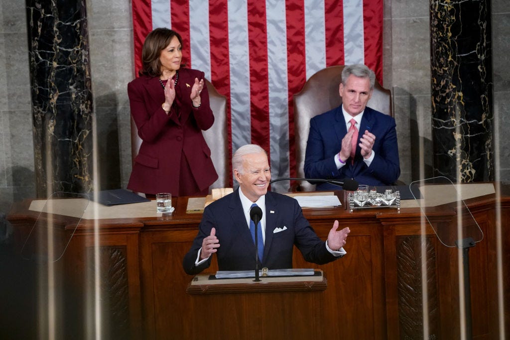 President Joe Biden gave his third State of the Union address last night, his first to a divided legislature and his first to new Speaker of the House Kevin McCarthy. State of the Union speeches are a grand tradition of the U.S.’ political theater; they’re treated with reverence and fanfare by the press and politicians alike largely because of the platform they provide — usually, the highest-profile public appearance a President will have in any given year. They are the biggest bully pulpit a President gets, a chance to address both Congress and the American people directly and lay out a vision for the future. After last night, it’s pretty clear what Joe Biden’s vision is: gamble that the economy stays strong and coast out the next two years while the GOP squabbles over their nominee.