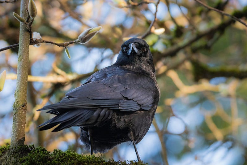 I’m not returning to the crow because of my warm and fuzzy feelings toward it. Certainly we can all use some comfort these days, and appreciation for the good and pure things in life. That’s all well and good. But I find myself returning to the crow because of a very specific characteristic, which Jack noted in his coronation post after the crow won our avian tournament: