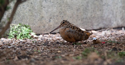 This photo comes from birder extraordinaire and friend of the blog Ryan Mandelbaum, but they’re not the only Discourse comrade who stans the woodcock (and yes, I know the name is humorous, will not be accepting any commentary, this is science we’re doing here). MULTIPLE readers answered our call for bird suggestions with some variation on “you gotta write about the woodcock!!!” And boy were they all too correct. Why is this bird amazing? Let us count the ways.