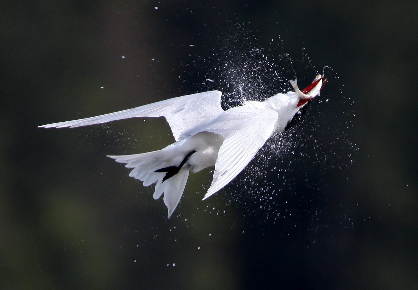 Not only do Caspian terns looooove fish—in an eating way, not a Shape of Water way, I hasten to add—they are also masters at getting fish. They have turned dive-bombing for food into a work of art. From Cornell’s All About Birds website: