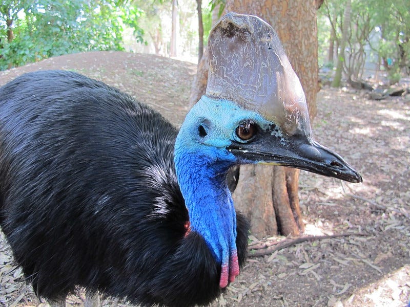 Hello!! Katherine here, longtime bird fan but first time Bird of the Week contributor. What an honor it is to be bringing you a BOTW that's basically (still) more dinosaur than bird: the cassowary.