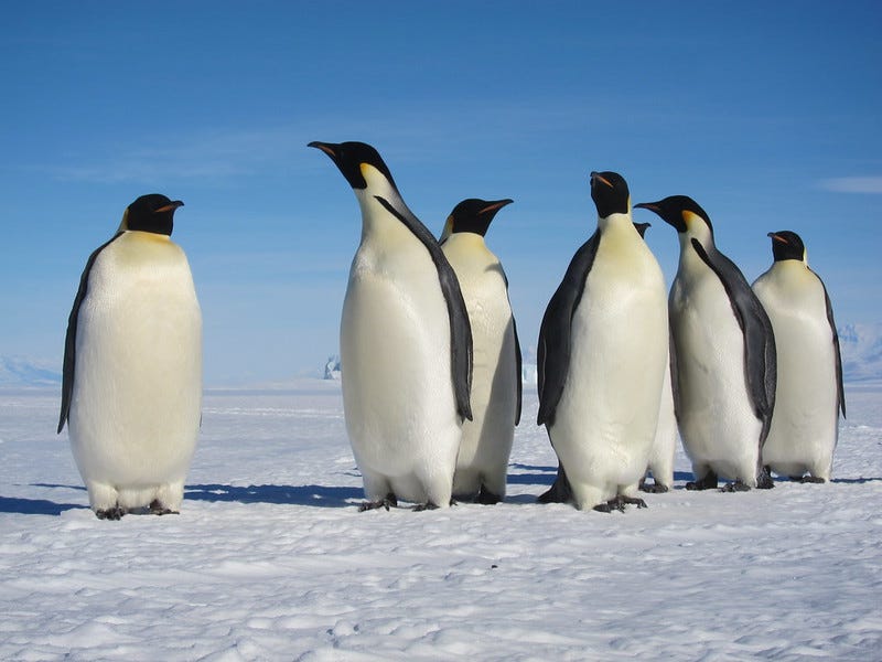 The emperor penguin is the tallest and heaviest of all penguin species. It’s endemic to Antarctica (classic penguin behavior, love it), and it looks like this. Like, truly, bow down: