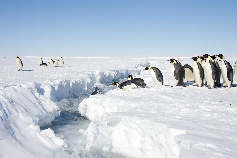 You know much of the rest—flightless, black and white and yellow coloring like a goddamn superhero, serial monogamists—but I have to admit, despite being relatively familiar with them, I found myself going DEEP on emperor penguins. Maybe it’s my mental state these days, but these birds are really a stunning species. There’s something about their stately manner paired with being absolute goofballs who live in one of the most severe places on earth that makes them deeply fascinating. Maybe it’s because they seem so alien and ill-conceived, and yet they are perfect. Maybe it’s because many photos of them look like band album covers: