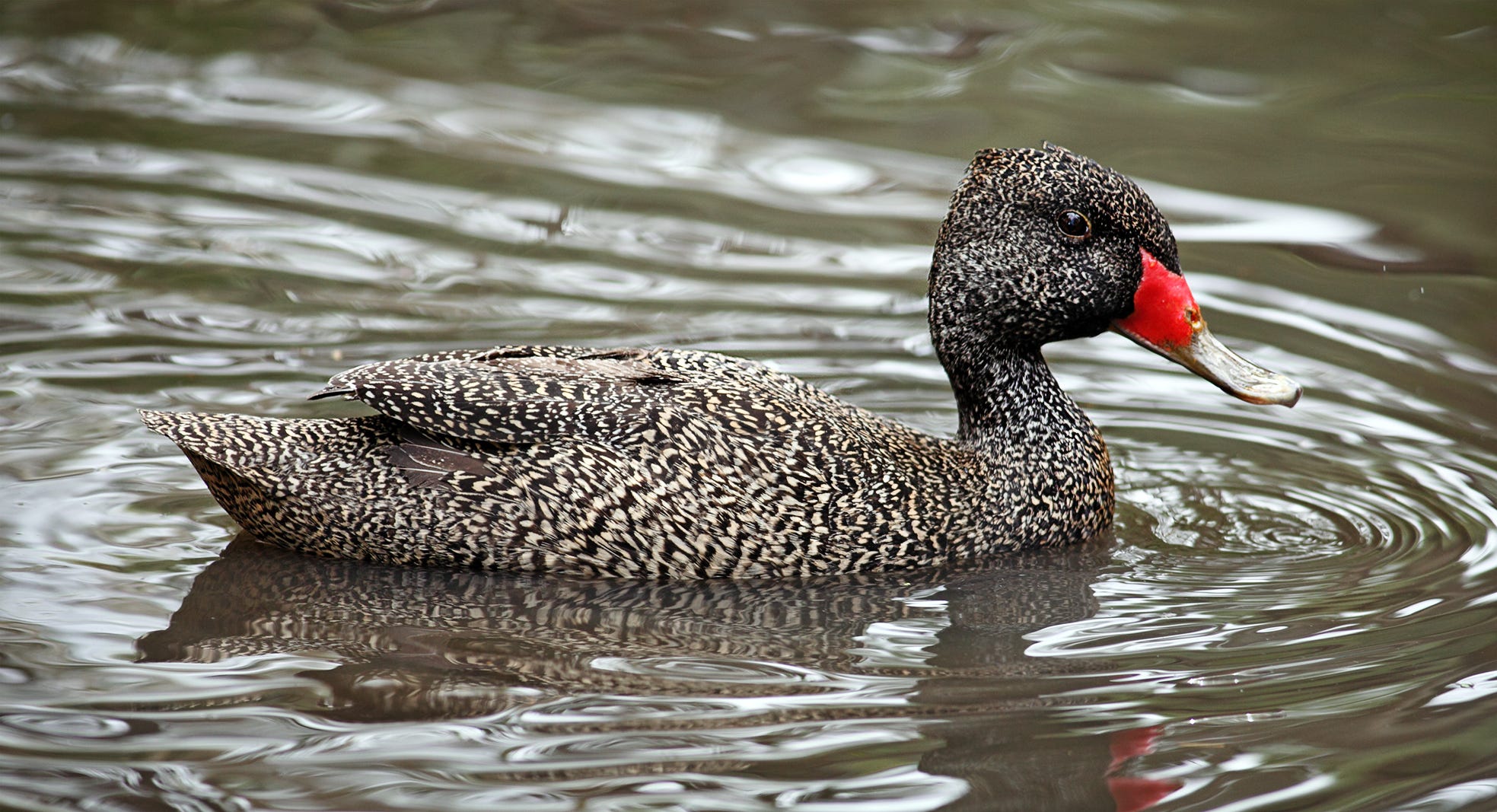 The freckled duck is also known as the monkey duck or oatmeal duck among other things, which is funny because those names make zero sense when “freckled duck” is sitting right there. Alas. Freckled ducks are native to Australia, have an elegant upturned bill, and populate freshwater marshes and creeks, preferably with dense foliage for cover.