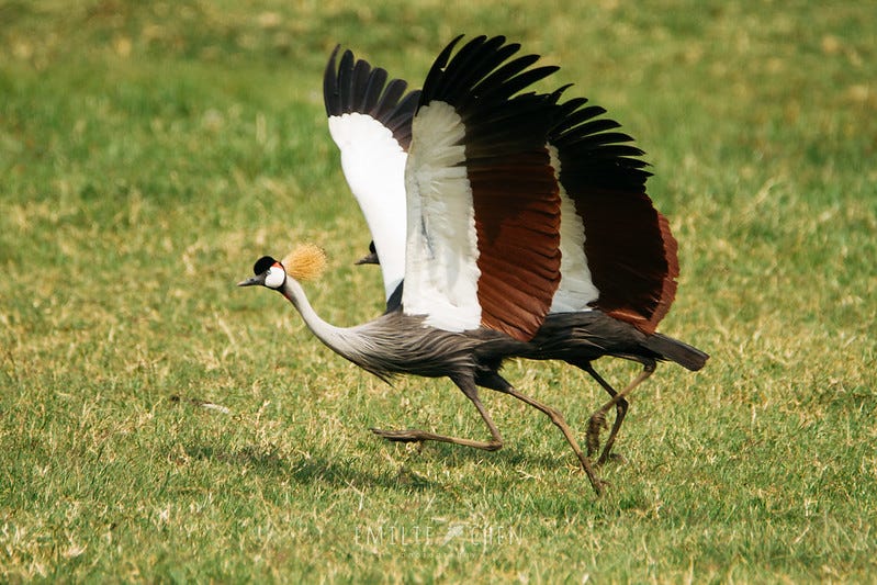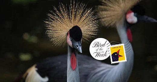 That vacancy is coming to an end today, and happy to say that our inaugural crane might just be the baddest and most legendary crane of them all. It’s a jaw-dropping bird, with a gloriously unassuming name: the gray crowned crane. Bow down!!