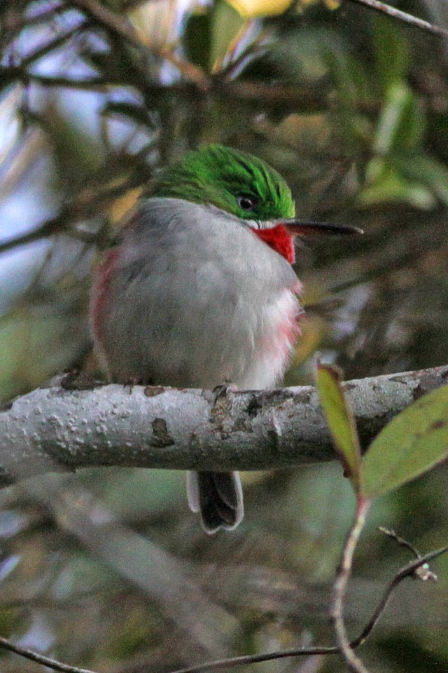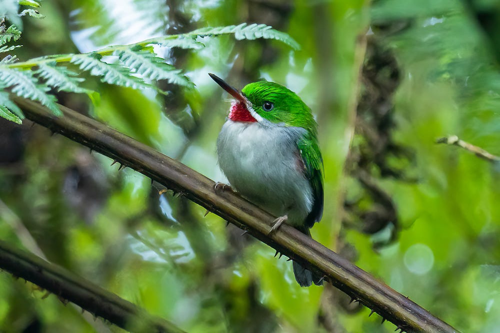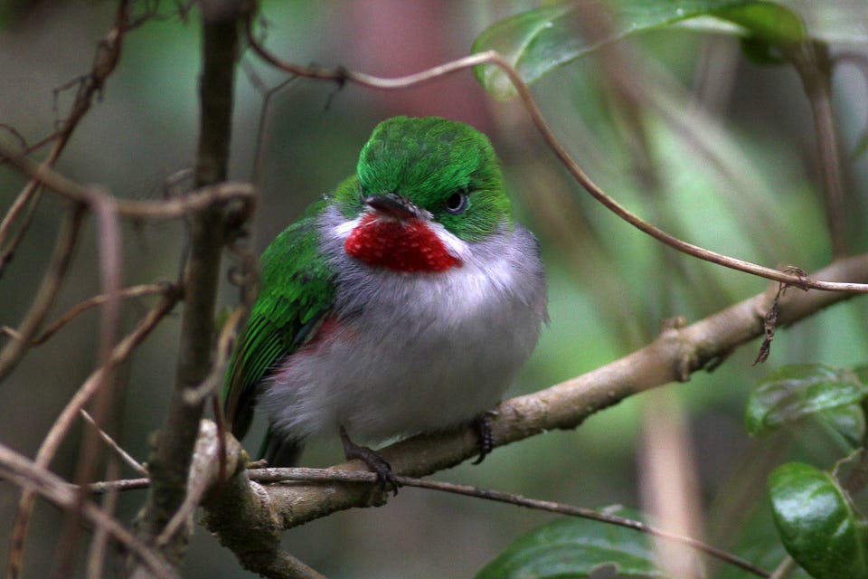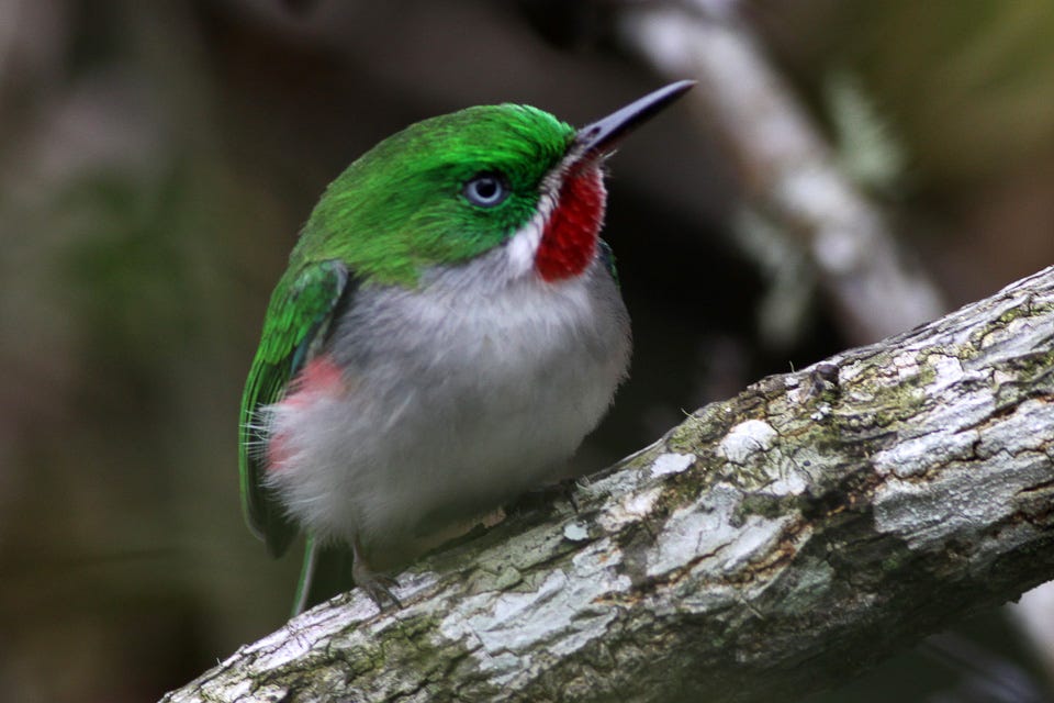 The narrow-billed tody is a very small bird that lives exclusively on the island of Hispaniola, which comprises Haiti and the Dominican Republic. It mostly makes its home in the island’s pine forests, way up in the mountains. And, according to Birds Carribean, it is always, always, always looking for bugs: