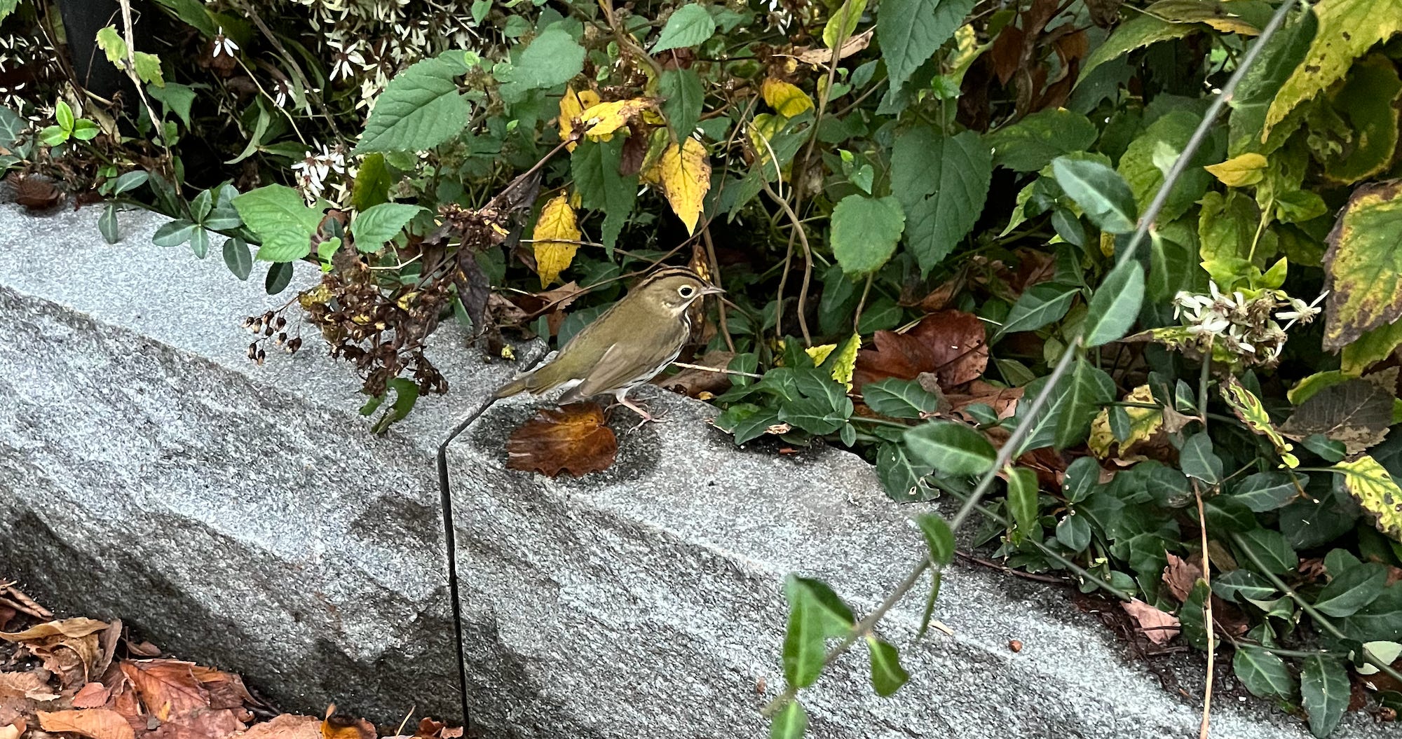 An Ovenbird hangs out in the hostas in my backyard every May and October for the last 3 years (I'm choosing to believe it is the same one). I ask him where he goes the rest of the year but he won't say.