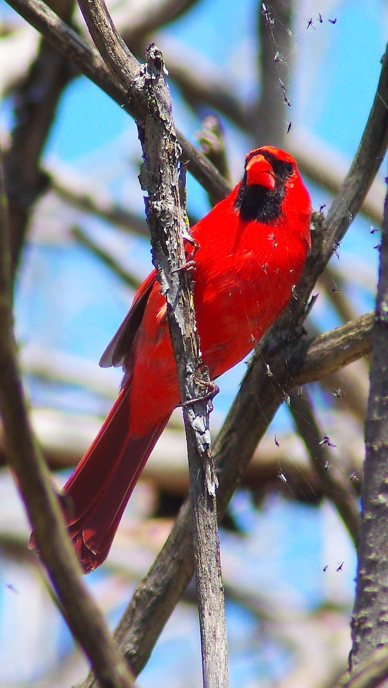 I am not the only one to hyperventilate about this bird. As Caitlin famously noted back in the blog that launched BOTW in the first place, the northern cardinal is the state bird of fully seven states—more than any other bird. She also wrote, “A cardinal is one of those birds that's so distinctive and attention-grabbing, that you always point and say, ‘look, a cardinal!’ when one comes into view.” Caitlin, right as ever.