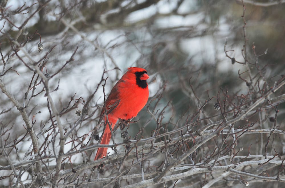 There's nothing like seeing a bright red cardinal against the dreary backdrop of cold, gray winter.
