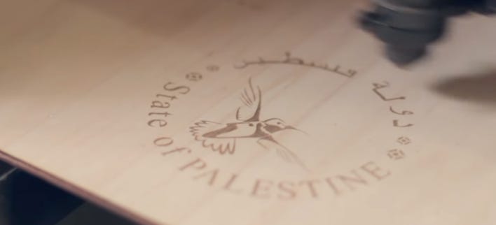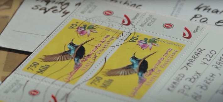 According to Al Jazeera, the postage stamps have actually been recognized by postal services (ie, you can use them to send letters) in Germany, Belgium, the Netherlands, Norway and the Czech Republic. The passport stamps are a different matter, presumably because they are a more provocative declaration of statehood and self-determination. In the documentary, Alison Ramer, an American-Israeli friend of Jarrar’s whose Israeli passport he stamped with the emblem recounts the trouble it got her into at an Israeli airport: