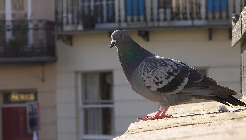 Before we begin, I should say that there’s a big wide world of pigeons and doves out there, but we’re zeroing in on the one we know best, the bird known as the domestic/feral/rock pigeon or dove (Columba livia). For the duration of the blog, please imagine me shouting all of this absolutely breathlessly like a child delivering a school report after learning that the human head weighs eight pounds.