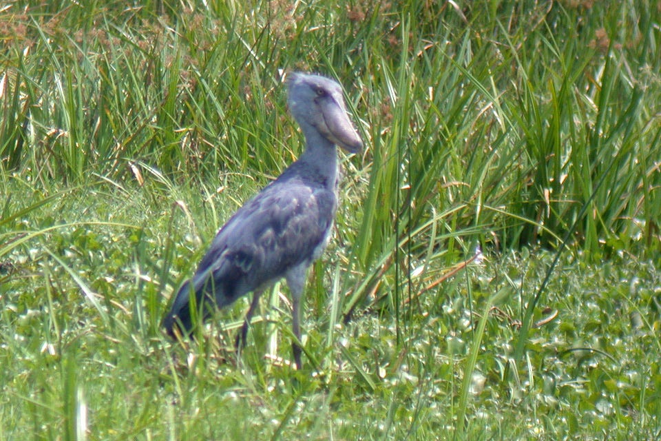 Uh-huh. Shoebill by name, shoebill very, very much by nature. The first thing I thought was that it looked like a giant wooden Dutch clog had attached itself to this bird's face. It turns out that this is what a lot of other people think too. Hmm, maybe that's why it got the name??? (It's also called the whalehead, which is pretty appropriate.)