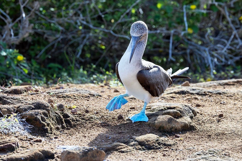 The shade of blue varies from bird to bird and can serve as an indicator of health and of how much fresh fish a booby is eating. No surprise then that their feet are part of their mating selection. The hue, as well as a bird’s dance moves, helps guide a female in her decision-making: