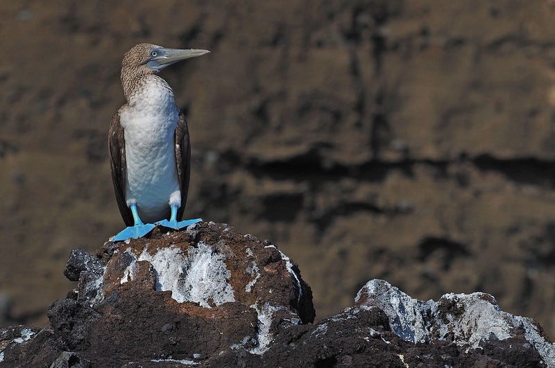 I won’t be making any Wikifeet jokes in this blog, and I generally hate to veer scatological, but in this case, I must break my own rule to briefly note that blue-footed boobies often poop on their defining characteristic as a way to stay cool. Humble kings! They also form rings of defecation around their eggs because they are smart as hell. No egg is worth that trouble.