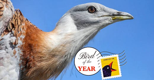 So without further ado: Discourse Blog’s 2023 Bird of the Year is the previously mentioned, possibly snubbed (???), “drug-taking, safe sex icon”: the great bustard. All hail!!!