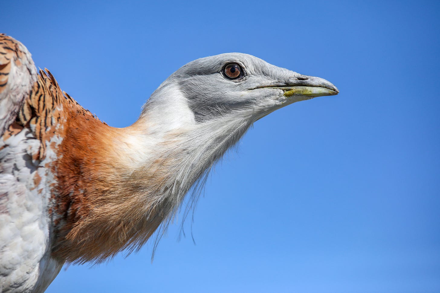I hope great bustards are with us for many years to come. They are a true safe sex role model, a force for good, and they contain multitudes underneath their relatively straightforward exterior. And if you’re hungry for more of that sweet, sweet bustard, please look at these photos of great bustards trotting and strutting their stuff. Great bustards might be elusive and respectful, but they’re not humble. I wouldn’t have it any other way.