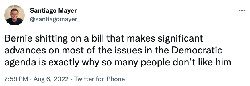 And still others are lashing out at the politicians who dared to find fault with any portion of the bill—namely, you guessed it, Bernie Sanders:
