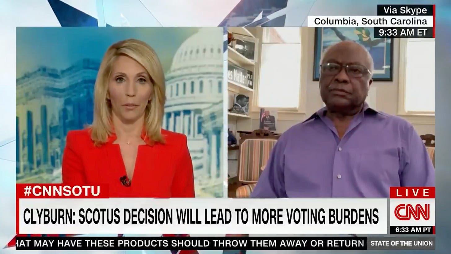 Rep. Jim Clyburn, the #3 House Democrat who was last seen bowling his way into an Ohio special election to stop former Sanders presidential campaign co-chair Nina Turner from getting elected to Congress, appeared on CNN on July 4 to talk about voting rights and said Democrats were "absolutely" for voter ID laws.
