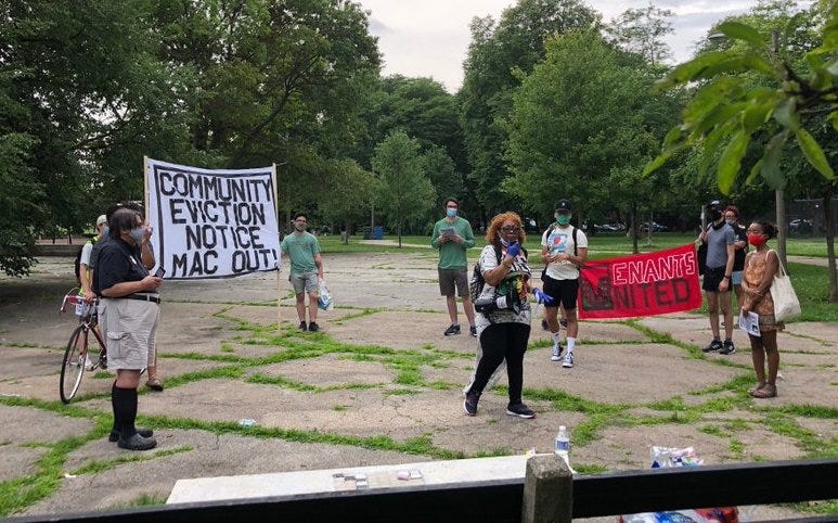 Witus: There are many tenants of Mac Properties who joined the rent strike out of solidarity with their fellow tenants who couldn't pay. That action was organized specifically around April 1st and May 1st deadlines for rent payment. There are a whole lot more tenants of Mac Properties who haven't had any income, and they are still on rent strike because they can't pay their rent. Or if they chose to pay their rent, they would be choosing to pay for rent instead of buying groceries. So in that way, the rent strike continues.