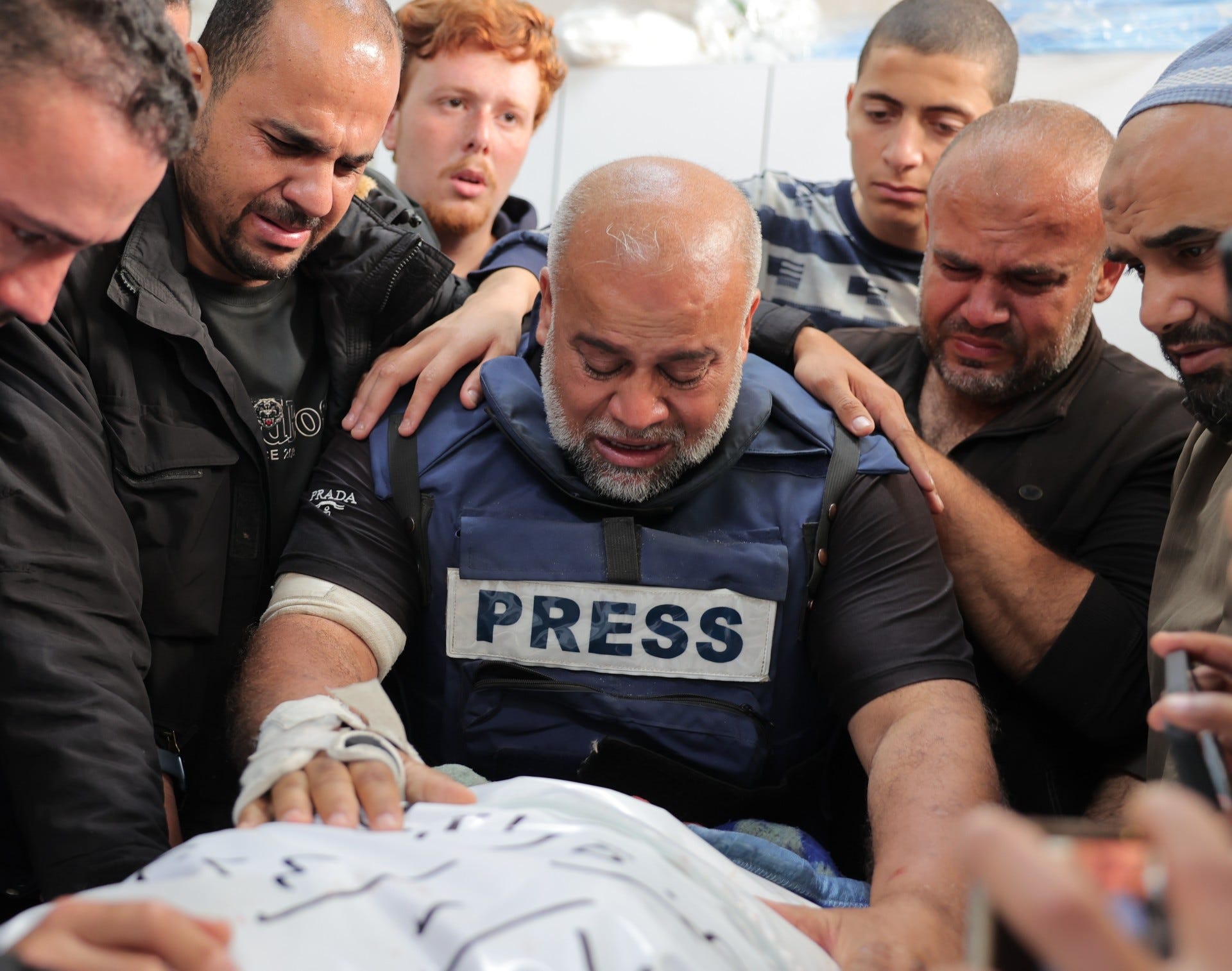 If you look through the Getty wires like I had to do to get these images, you will see the corpses of all of these people in photo after photo, splayed out and bloody, part of a seemingly endless gallery of death. And you will see Dahdouh again and again, at the center of yet another grieving crowd, cradling the lifeless head of someone he loved.