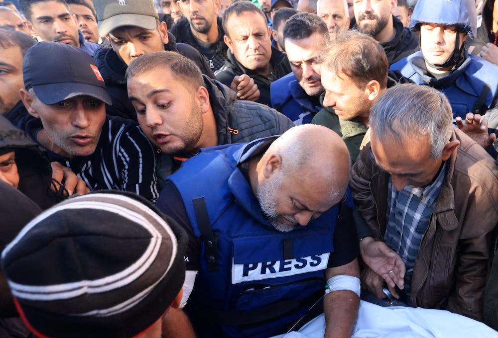 That is why we can’t allow what is happening in Gaza to fade into the background. The people carrying out this abomination are banking on our collective attention drifting away, on numbing us through the repetitive bloodshed of permanent war. 23,000 dead, 24,000 dead, 25,000 dead—soon it all starts to blur. Wael Dahdouh mourning in October, December, January—soon you can’t tell one picture from another. Soon it’s just another bad thing happening somewhere else. Maybe then Israel can start carrying out those ethnic cleansing plans it’s so eager to discuss.