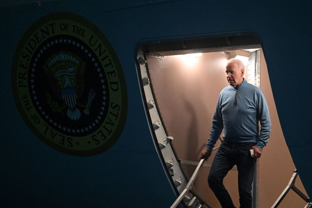 I’ve given up trying to predict or forecast the results of elections—it’s a surefire way to make yourself look like a dumbass—but if I were in the business I would probably look more at incredibly mundane things like the price of gas and the president’s ability to walk in a straight line rather than any sophisticated polls or prediction models. Yes, Biden’s overarching political strategy comes into play too: the administration’s understated tactics when it comes to legislative accomplishments and selective support for high-profile causes like the current UAW strike are certainly things to consider. But at the end of the day if we go into the general election with gas prices below $4 a gallon and Biden still fully mobile, he’s got a pretty good shot—and seeing as he’s the best possible candidate the Democrats seem likely to put forward, that’s all you can hope for. If it takes a lot of tennis shoes and a dedicated No Slip Don’t Trip Right This Way Sir task force, so be it. If there’s one thing the first Trump presidency taught us, it’s how far and how fast the country can fall.