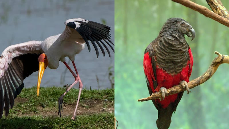 Two straight-up weirdo birds made it through to face each other. The picture of the stork makes us laugh every time. The dracula parrot is also iconically hilarious for not even being remotely vampiric in its habits. Which of these goofballs will you pick?