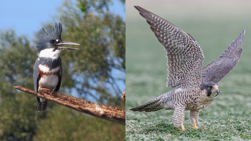 I understand why kingfishers are getting crushed, peregrine falcons are incredible, but consider: kingfishers have teeny little feetsies and big beaks so they can burrow pretty deep into a river bank and not get stuck in there, think about how cute that is