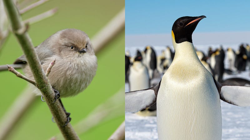 AND LAST BUT NOT LEAST. The tiny poofy bushtit, which had the biggest win of round 2, meets the big kind of poofy emperor penguin, which is an emperor penguin. WHO YA GOT?
