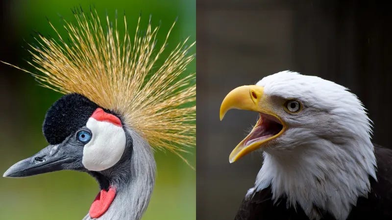 Two very different kinds of breathtaking here. Crane vs. eagle—you decide. (And to be clear, the bald eagle is NOT a representative of America for the purposes of this competition. We would never!!!)