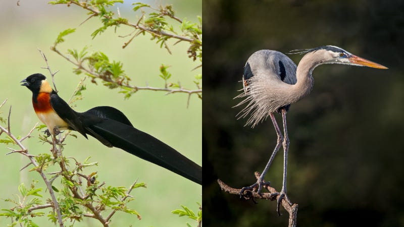 Long-Tailed Paradise Whydah vs. Great Blue Heron