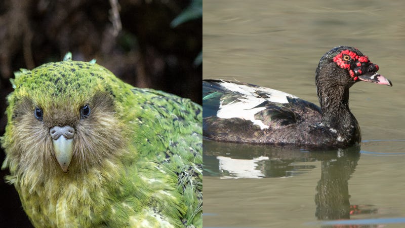 Two HUGE weirdos! The nocturnal parrot of New Zealand! A big duck with an insane face! Ahhhhhhhhh!!!!