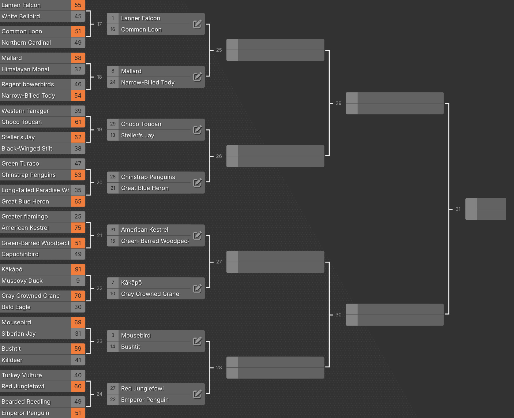 Round 1 of Fowl Hysteria 2025, the world’s first-ever bird-based bracket tournament, is done and dusted, and WOW. We did not see some of these results coming.