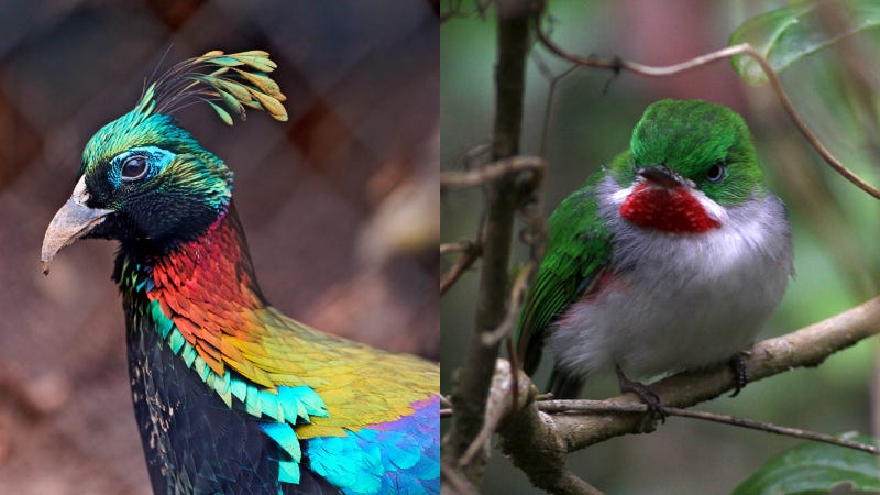 OK, this was surprise number one. The monal just DOMINATED the mallard—literally the duck you think of when you think “duck”! We thought the mallard would put up more of a fight. That’s Fowl Hysteria for ya. Now the monal must put its shimmering splendor up against the tody, an equally beautiful bird whose tiny size belies its power.