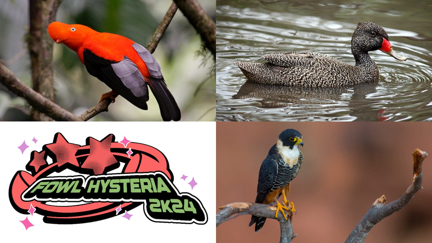 Despite pleas from readers, the falcon brushed the belted kingfisher aside and zipped to a victory, though not in pulverizing fashion (the final was 59-41). The cock-of-the-rock had an easier time of things, leveling its weirdo stare at the cowbird and sauntering off with a 72-28 win. And now they meet in the Fowl Hysteria arena: one the apotheosis of glorious goof-dom, the other an international emblem of predatory grace. Over to you.
