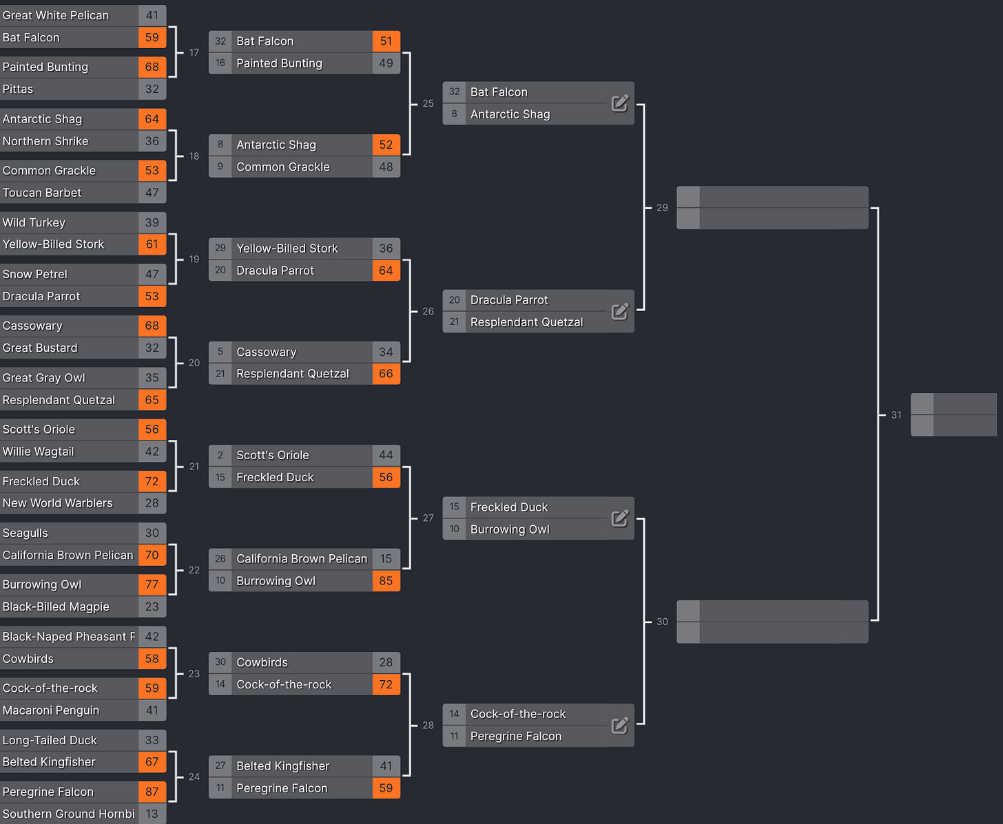 WHAT a ride this year’s Fowl Hysteria is turning out to be. You’ve got twists! You’ve got routs! You’ve got nail-biters! It’s everything you could ever want from the world's first-ever bird-themed bracket tournament.