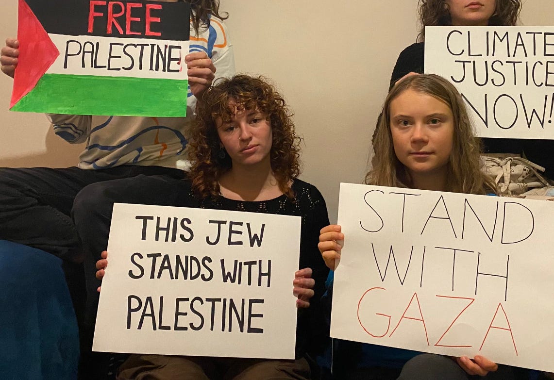 Just yesterday in The Guardian, Thunberg and three members of the Fridays for Future climate crisis movement wrote an op-ed further elaborating on their activism for Gaza. The piece, headlined, “We won’t stop speaking out about Gaza’s suffering – there is no climate justice without human rights,” is a full-throated commitment to continued action and support of Palestinians, and a direct pushback on all those who are mischaracterizing that support (emphasis mine):