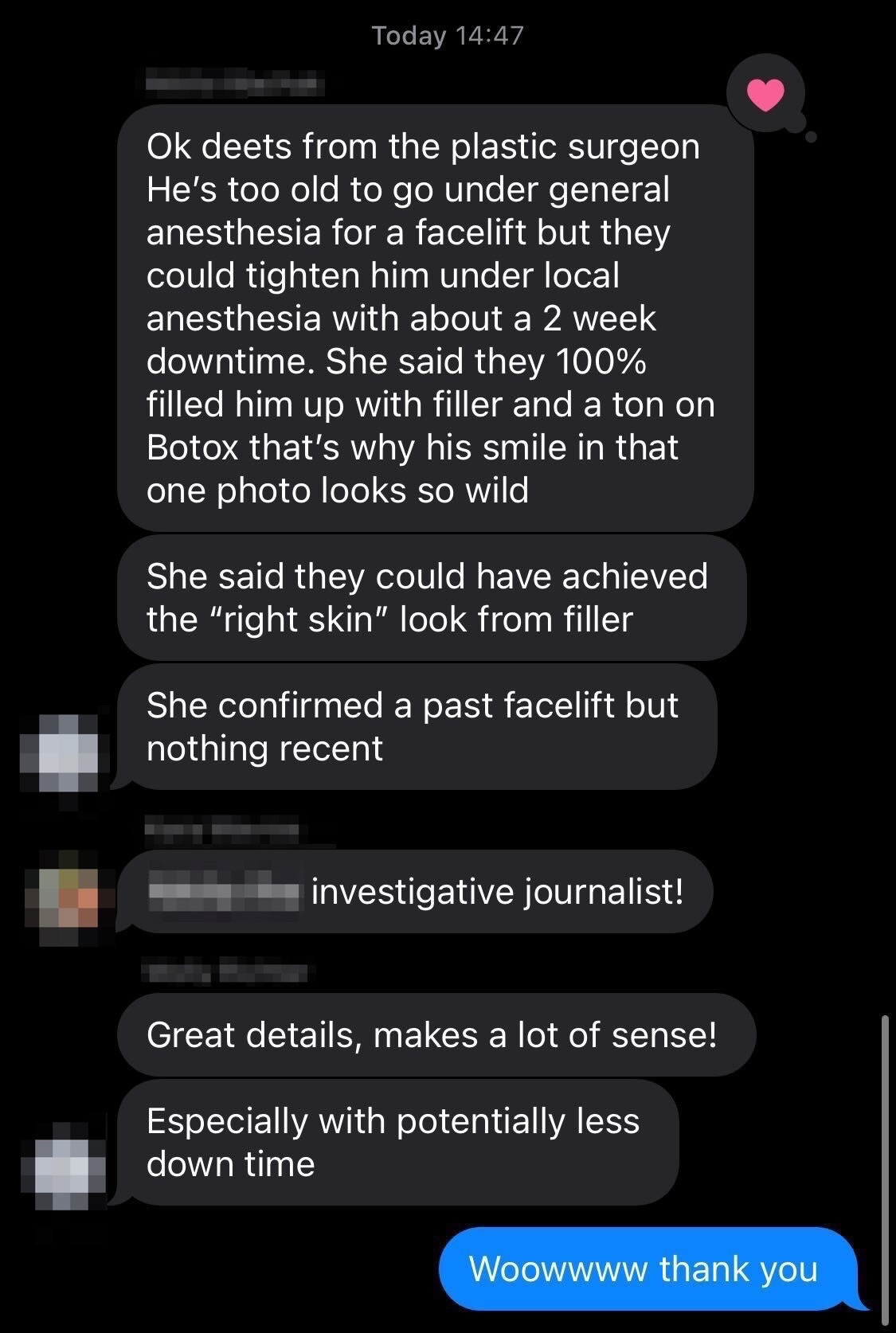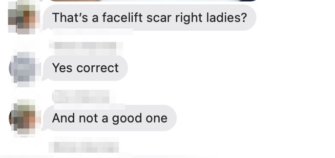 This just confirms my theory that every single celebrity/politician/tv personality has had work done. Also- telltale old facelift scar and a crapton of recent fillers