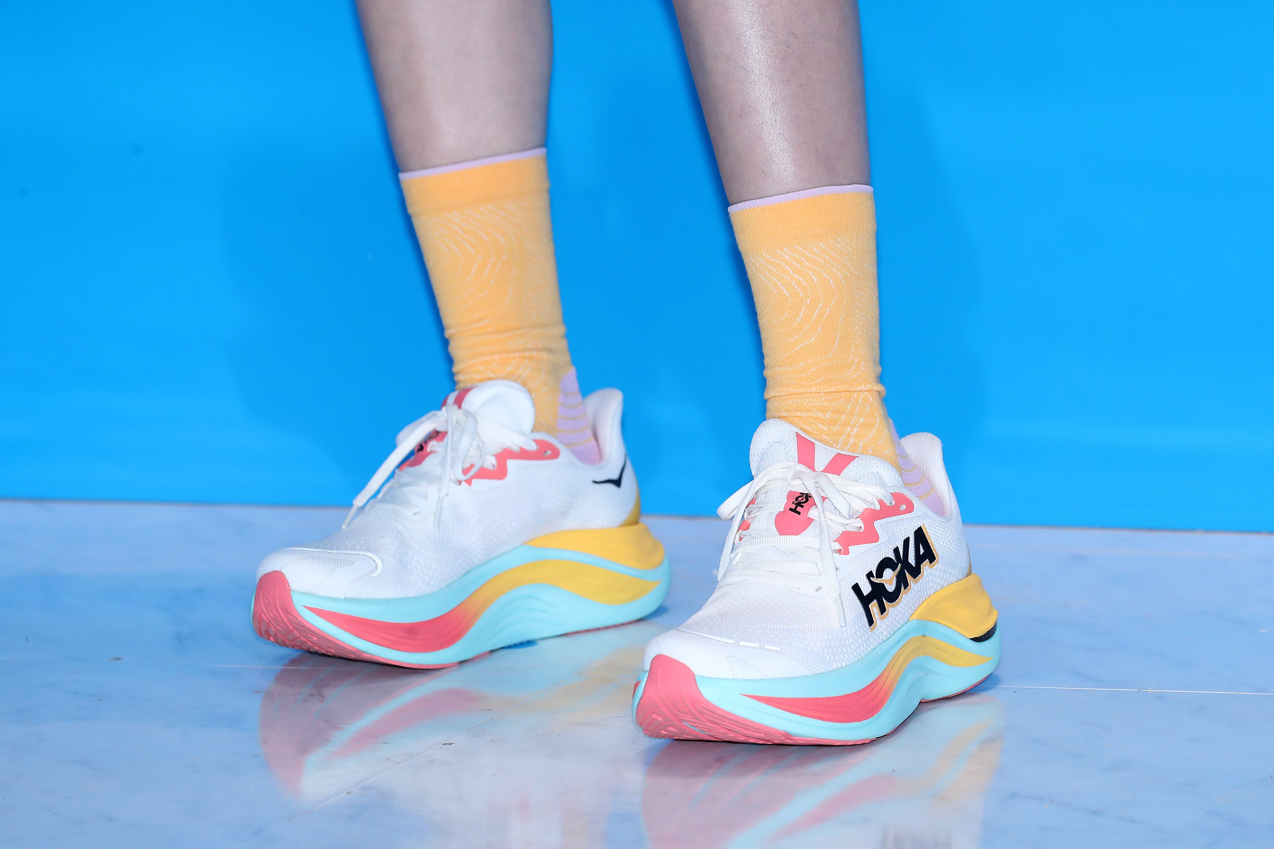 I do not have anything against Hokas, like conceptually. Everyone I’ve spoken to says they’re a great running shoe. They look big and cushioned and comfortable, if a little bulky and ugly. But to work? Where you are not required to run, or be on your feet much? When you are standing in the office’s little galley getting a cup of coffee or complimentary bag of Boom Chicka Pop or gluten free pretzels? Running shoes? Really?