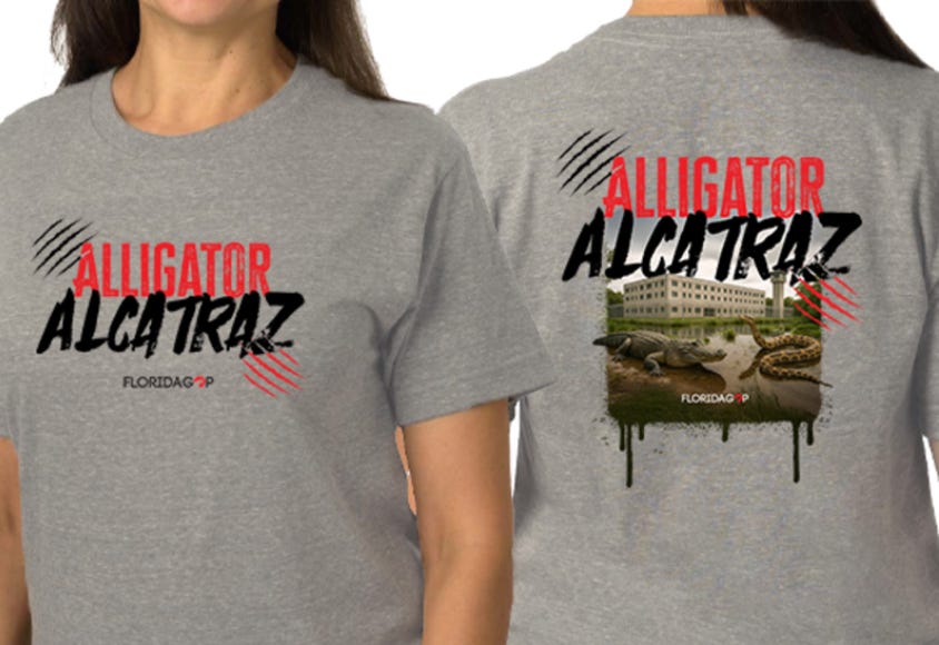 “Clearly from a security perspective, if someone escapes, there’s a lot of alligators you’re going to have to contend with,” explained Florida Gov. Ron DeSantis. “No one is going anywhere once you do that. It’s as safe and secure as you can be.”