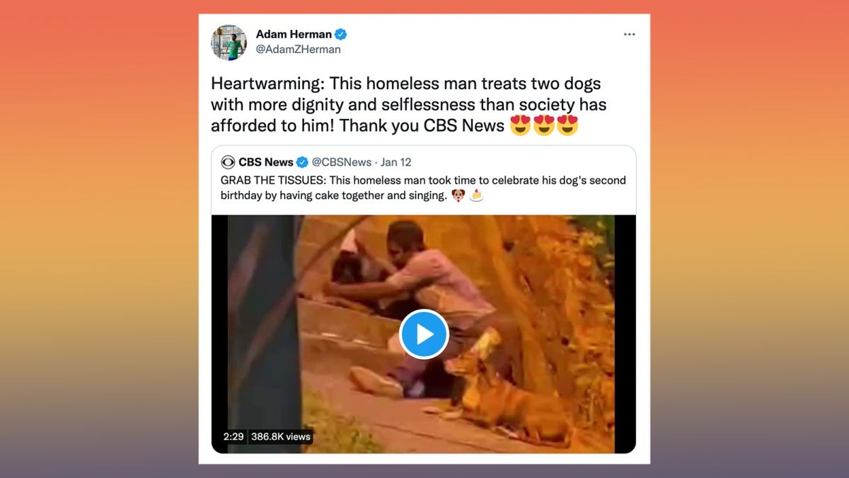 What??? Look, this kind of story is nothing new. These “HEARTWARMING:” tales are so persistent that they’re a genre unto themselves at this point, and are often referred to as the feel-good misery story or the feel-good feel-bad story. They’re so common that people regularly go viral on Twitter by dunking on them, so common that they’ve quite literally been memed and Clickhole-d to death.