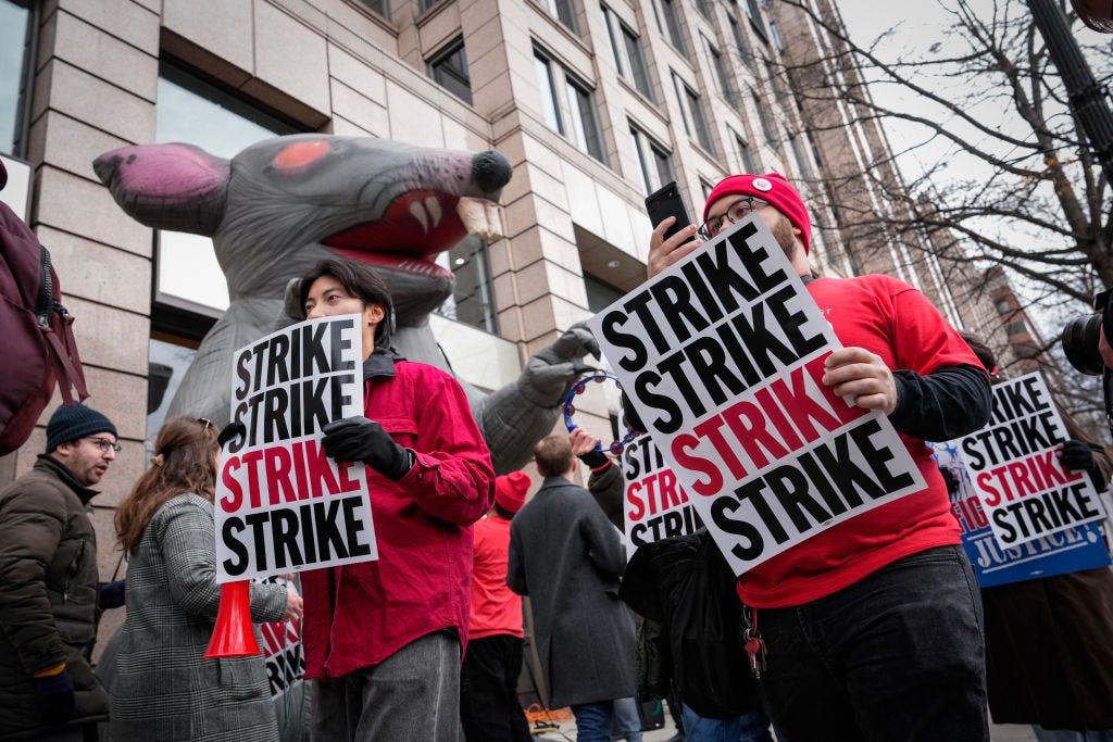Hundreds of staffers are on strike today as contract negotiations stall and jobs are on the chopping block.
