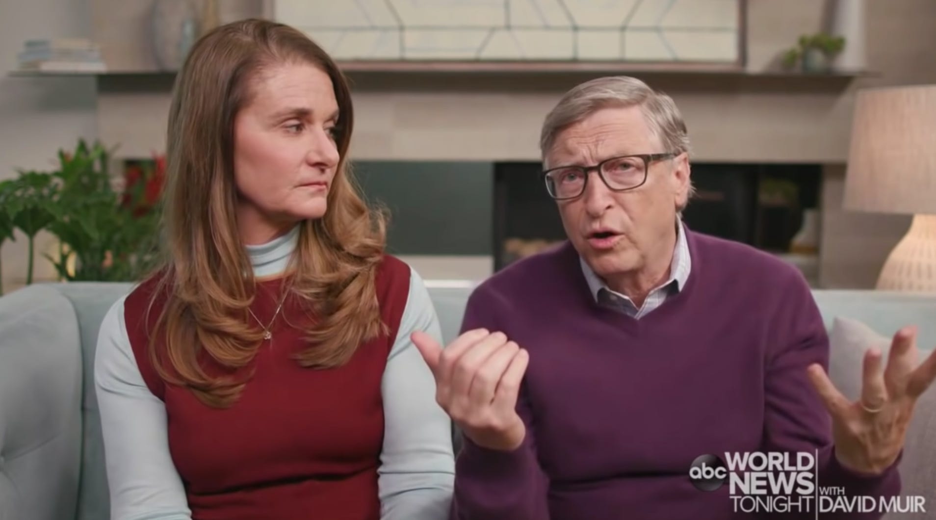 Pictured: Bill and Melinda Gates, rich people whose money can be taken. Screenshot via ABC News.