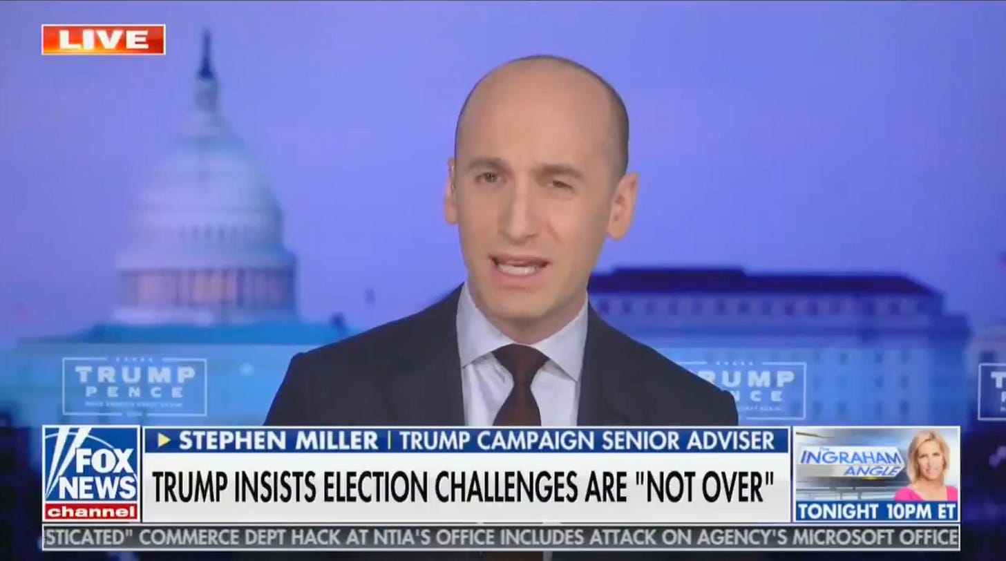 "Your legal team, in almost every state, 50 times, lost. Some with Trump judges," Kilmeade pointed out, as Miller rambled on in his certifiably dick voice about....god, who even cares what at this point? It's all so dumb and sad.