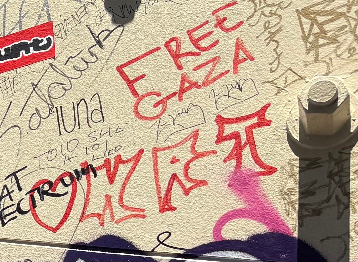 In the absence of justice from above, declarations from below keep multiplying — graffiti, posters, and scrawled stickers making a citywide chorus that cannot be embargoed.