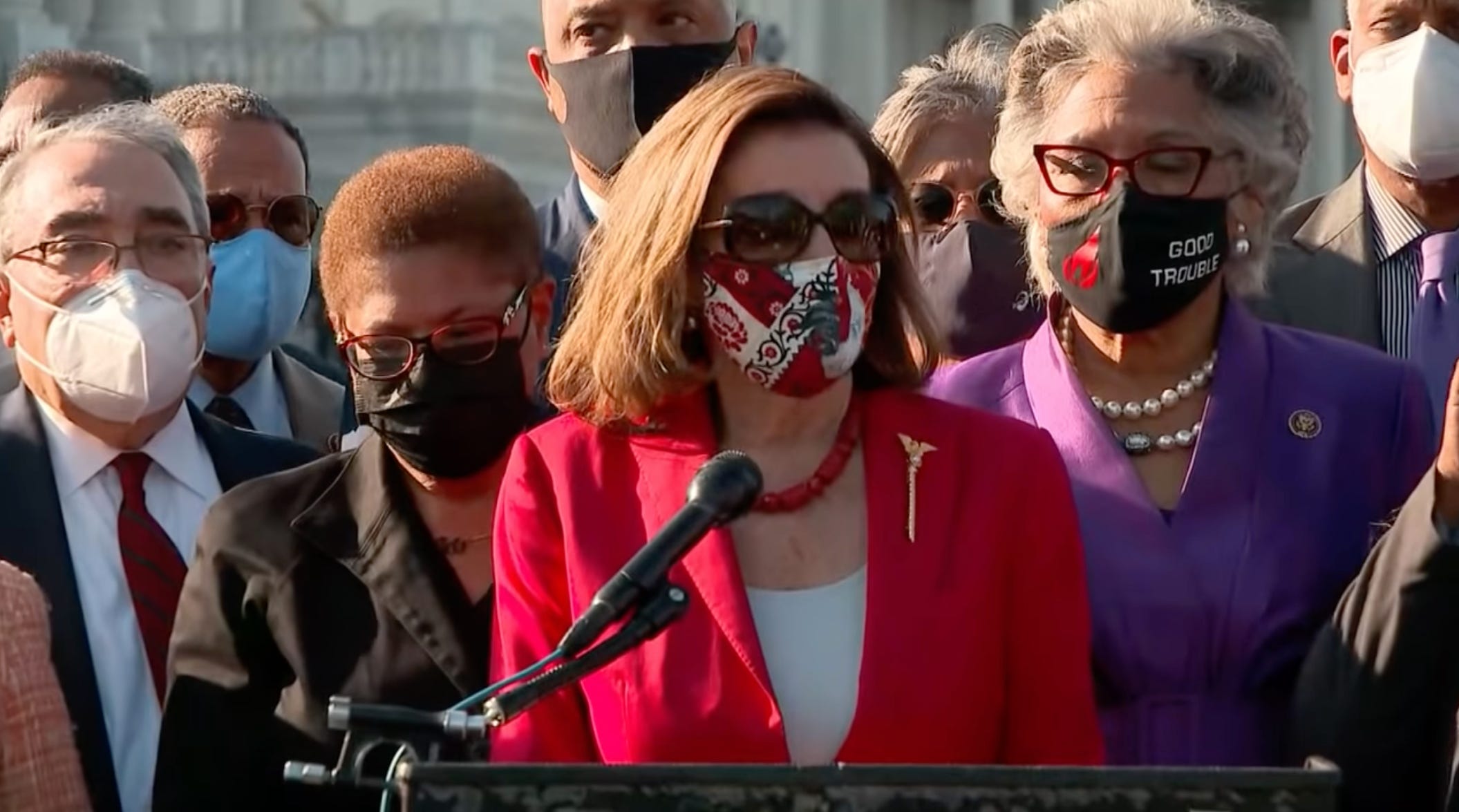 Pelosi, flanked by members of the Congressional Black Caucus, looked up to the heavens as she said these words.